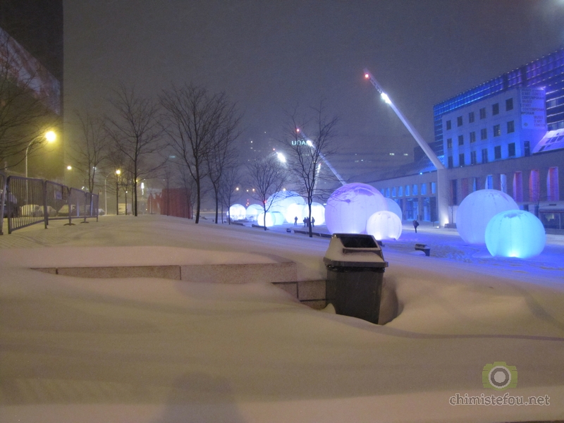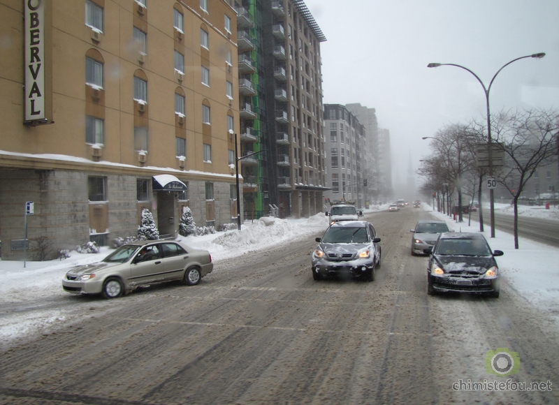 Retour pour la dernière fois sur Montréal, c’est une joyeuse pluie verglacente qui nous attend au départ d’Ottawa et sur Montréal encore de la neige fraiche mais c’est la pluie qui prend le relai jusqu’à ne presque plus rien laisser le lendemain matin.
