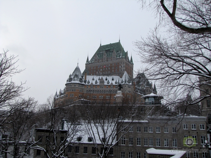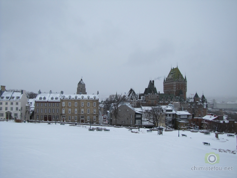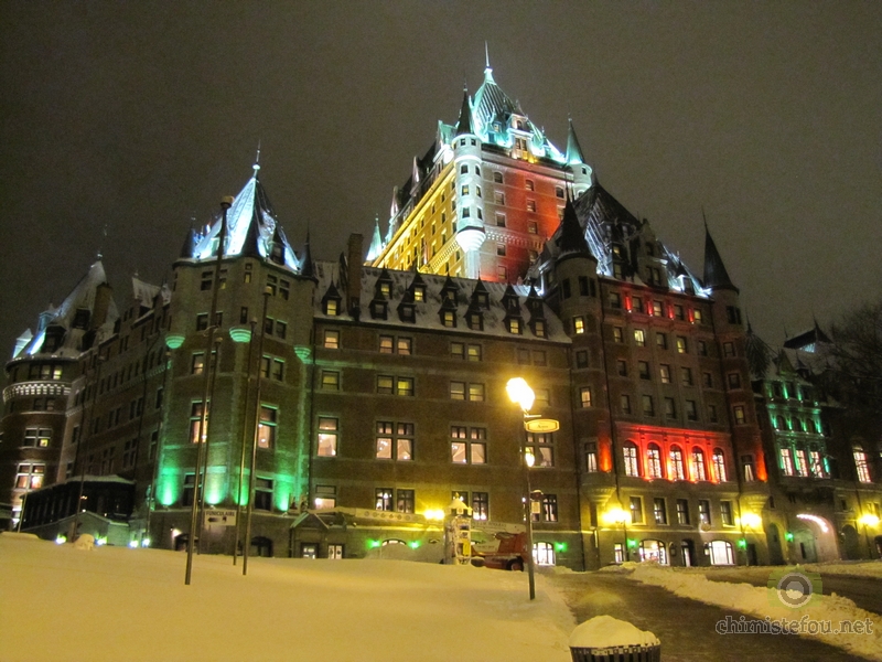 Voilà après 2 autres jours dans Montréal consacré aux visite (notamment un truc drôle : je marchais quand un mec m’a interpellé et m’a dit « ho my god you just look like my ex boyfriend that’s insane ! … Un peu surpris j’ai réussi à réponde seulement « well great but .. I’m not him .. » xD) c’est en pleine tempête de neige que je pars pour Québec, le bus n’a que 20 min de retard pourtant il a neigé entre 20 et 30cm pendant la nuit et ca continue ! Le déneigement est très efficace ! Ca traine pas ! et l’autoroute très praticable. Arrivée à Québec il fait un peu plus froid (beaucoup même -10) je me débrouille pour prendre un bus qui m’amène à l’hotel, très typique et me réserve la visite de la ville pour le lendemain.