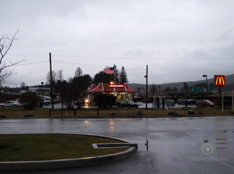 C’est sous la neige mouillée que je prends le bus pour les USA ! Après une petite heure de route nous voici à la frontière, quelques questions, prise des empruntes et c’est bon je suis aux USA ! (je suis rentré moins vite au canada lol). On traverse le Vermont sous la neige et c’est la pluie qui prend le relai. Petit break à White River Jonction, petite ville avec … un mac do avec un énorme drapeau américain devant, ca donne tout de suite la couleur ! Arrivée à Boston vers les 19h puis directement à l’hotel, il faisait 5°C c’était donc très chaud pour moi !